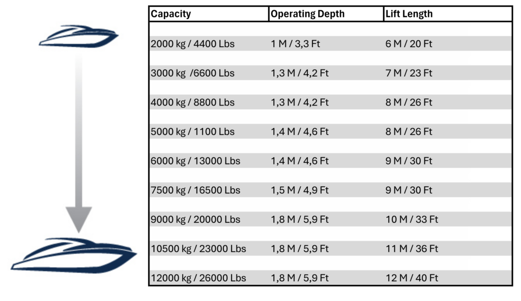 HIGH & DRY lifts are suitable for boats from 2 to 12 tons.